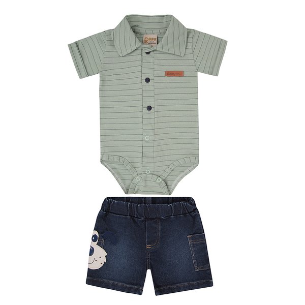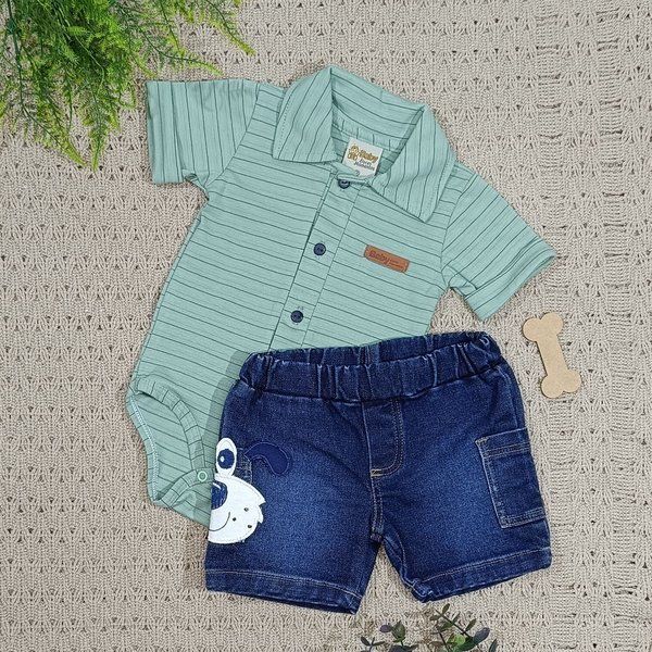 Conjunto Infantil Menino – Body Listrado com Shorts Jeans Bordado