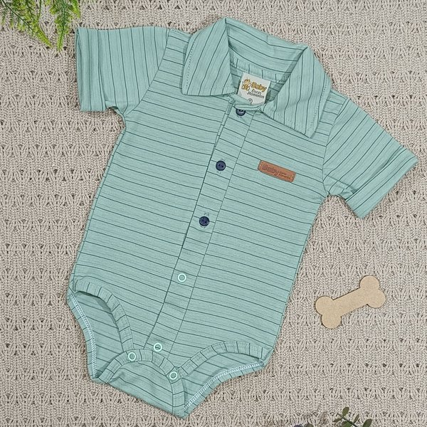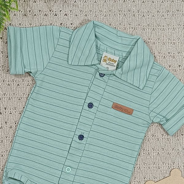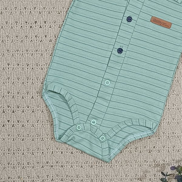O body é confeccionado em malha listrada leve e macia, com abertura entrepernas com botões de pressão que facilitam
