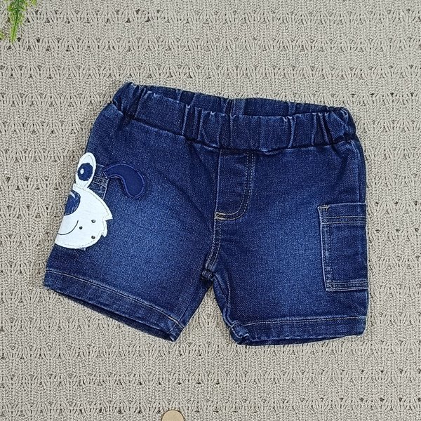 O shorts é feito em jeans leve, com cós inteiro em elástico que garante ajuste confortável ao corpo. Conta com bolsos nas