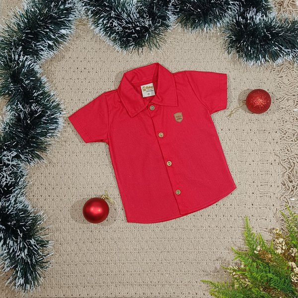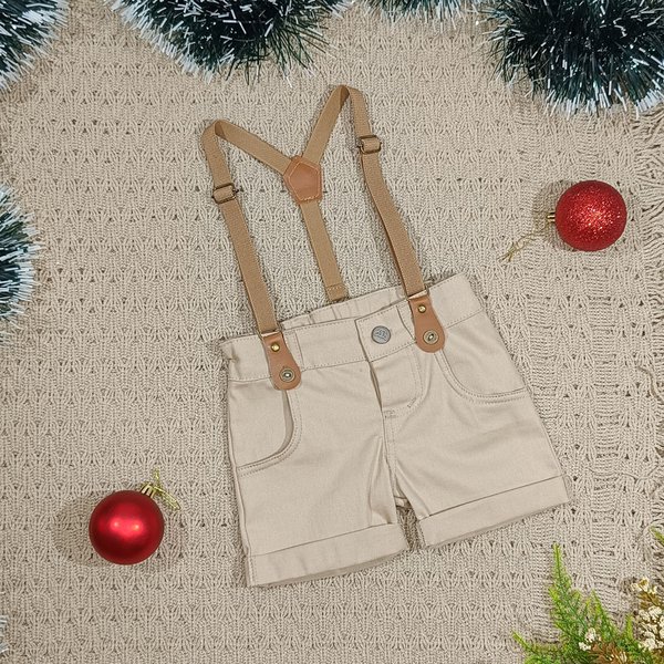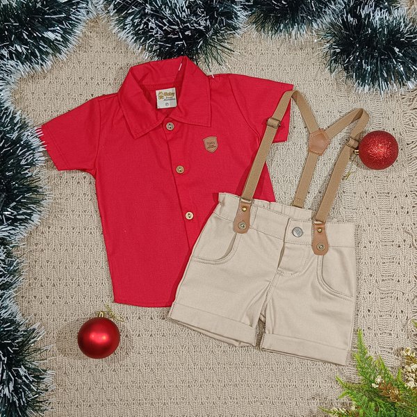 Conjunto Natalino Menino – Camisa em Tecido Plano e Shorts em Sarja com Suspensório