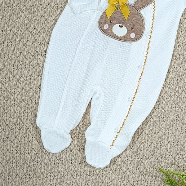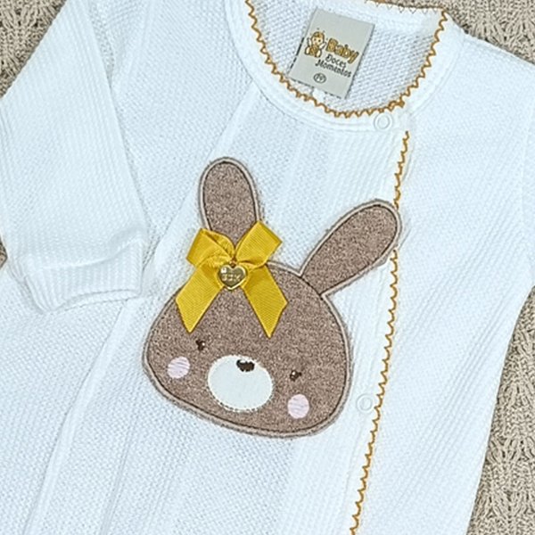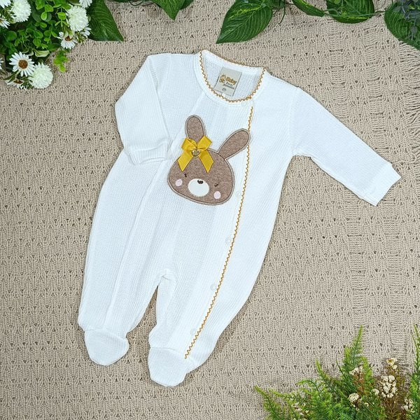 Macacão Bebê Menina – Malha Tricot com Detalhes Delicados