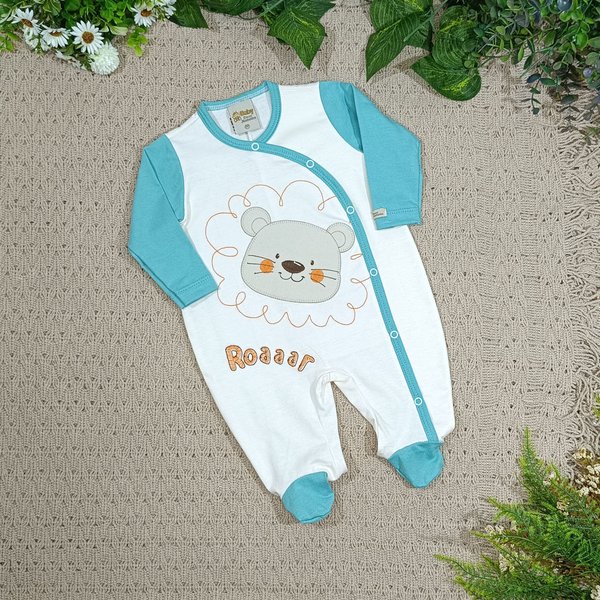 Macacão Bebê em Malha 100% Algodão com Pala Bordada