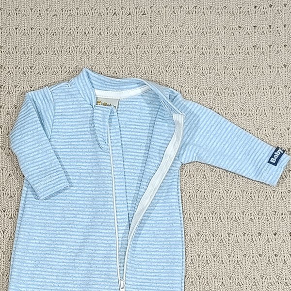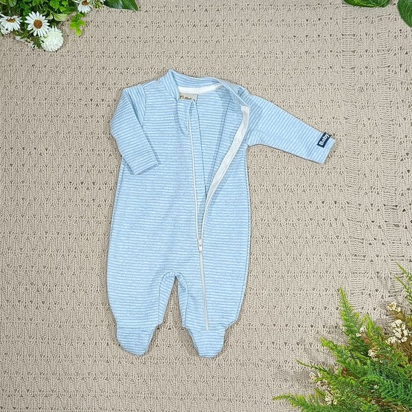 tecido macio, respirável e delicado, ideal para a pele sensível dos bebês prematuros. O zíper com abertura frontal