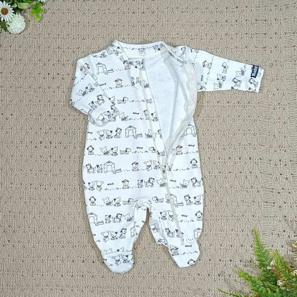 tecido macio, respirável e delicado, ideal para a pele sensível dos bebês prematuros. O zíper com abertura frontal