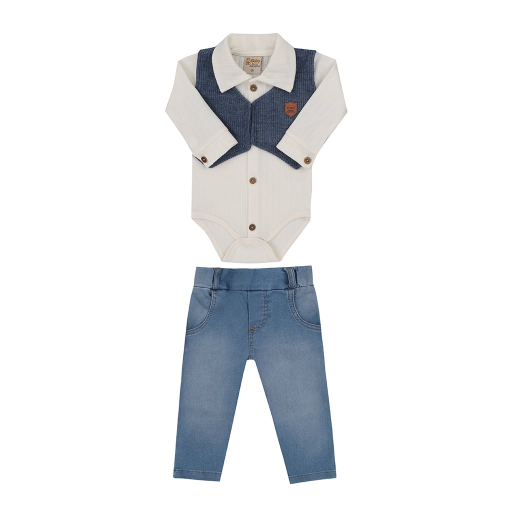 Apresentando um design encantador e funcional, este conjunto é confeccionado com materiais de alta qualidade que garantem maciez e durabilidade, independentemente do uso ou da estação. O conjunto inclui peças coordenadas que podem ser facilmente combinadas para criar looks encantadores para o seu pequeno, proporcionando versatilidade e estilo em todas as ocasiões.