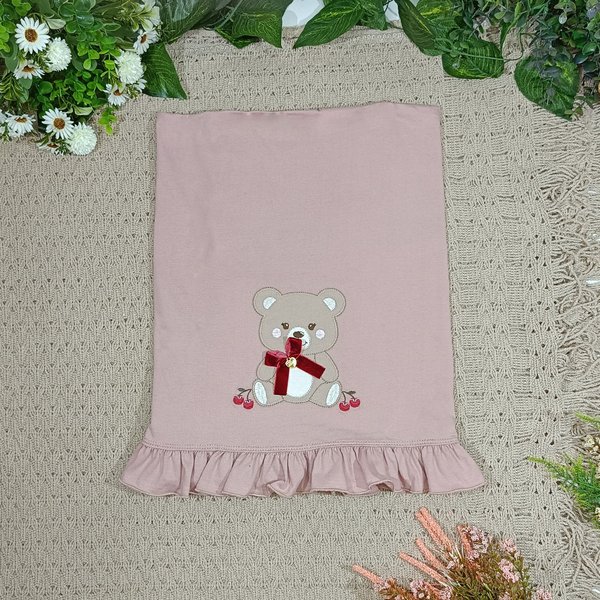 na hora de vestir e nas trocas. Acompanha uma linda manta em meia malha, com medidas de 80x80cm, acabamento em babados,