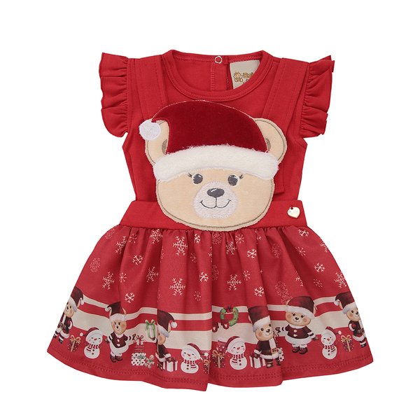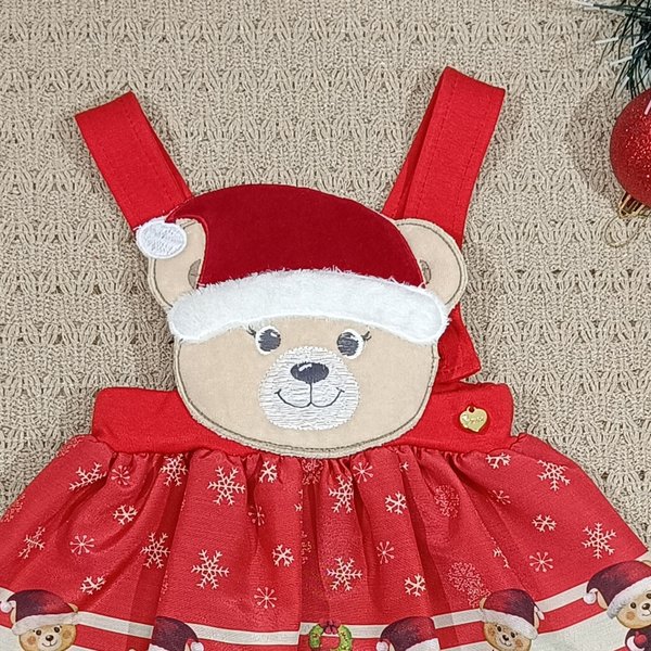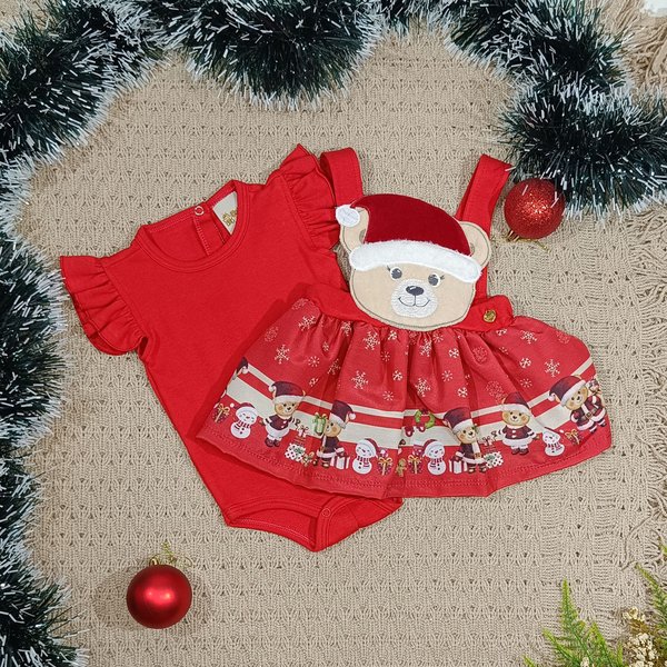 Conjunto Natalino Bebê Menina – Salopete com Saia Estampada e Body em Suedine